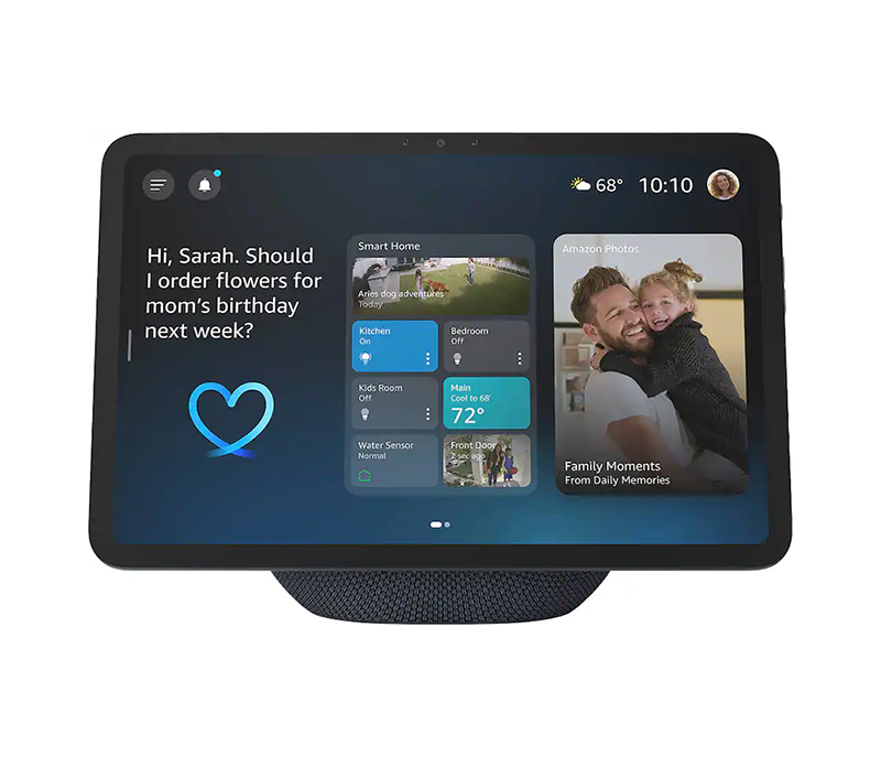 Meet the Amazon Echo Show 11. New size, more viewing area. The 11“ smart display features a vibrant Full-HD touchscreen, built-in smart home hub, AZ3 Pro chip for powerful performance, and Omnisense technology for highly personalized experiences.
